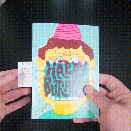 Once activated & opened, this birthday card will loop the Happy Birthday tune with the sweet sound of burping! There is NO off button so it will play until the battery dies (3+hours) or it's broken. If they decide to break it and stop the lovely noises, we've filled it with glitter! You're welcome!