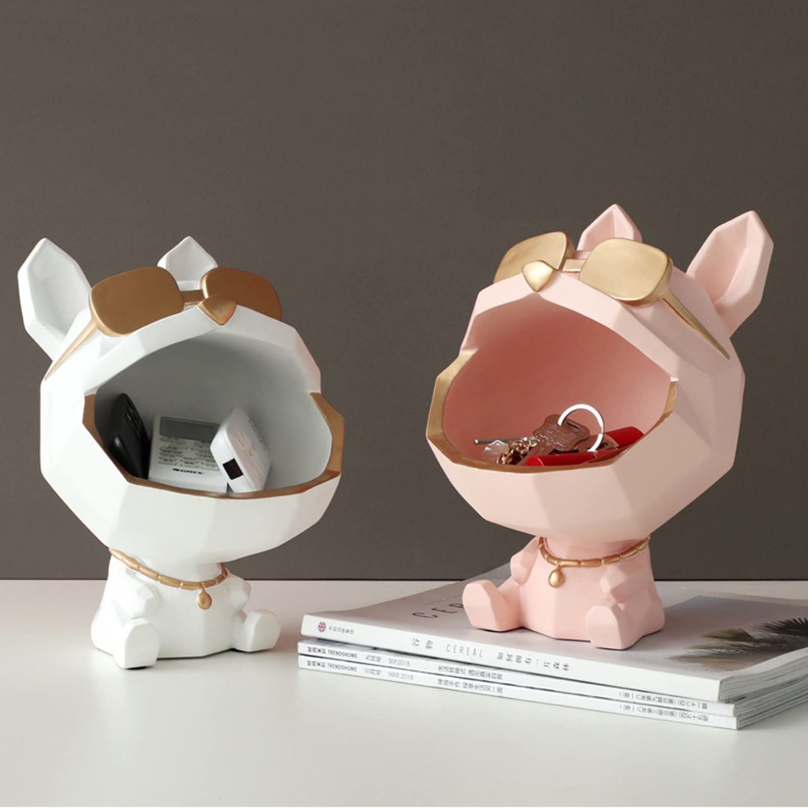 【Multipurpose】Dog statue decoration with open mouth for storing keys, phone, remote control,Suitable for living room, door shoe cabinet, porch decoration, etc.Makes a great storage item,Perfect home accessory for man and woman, can be used as a key rack for the whole household.