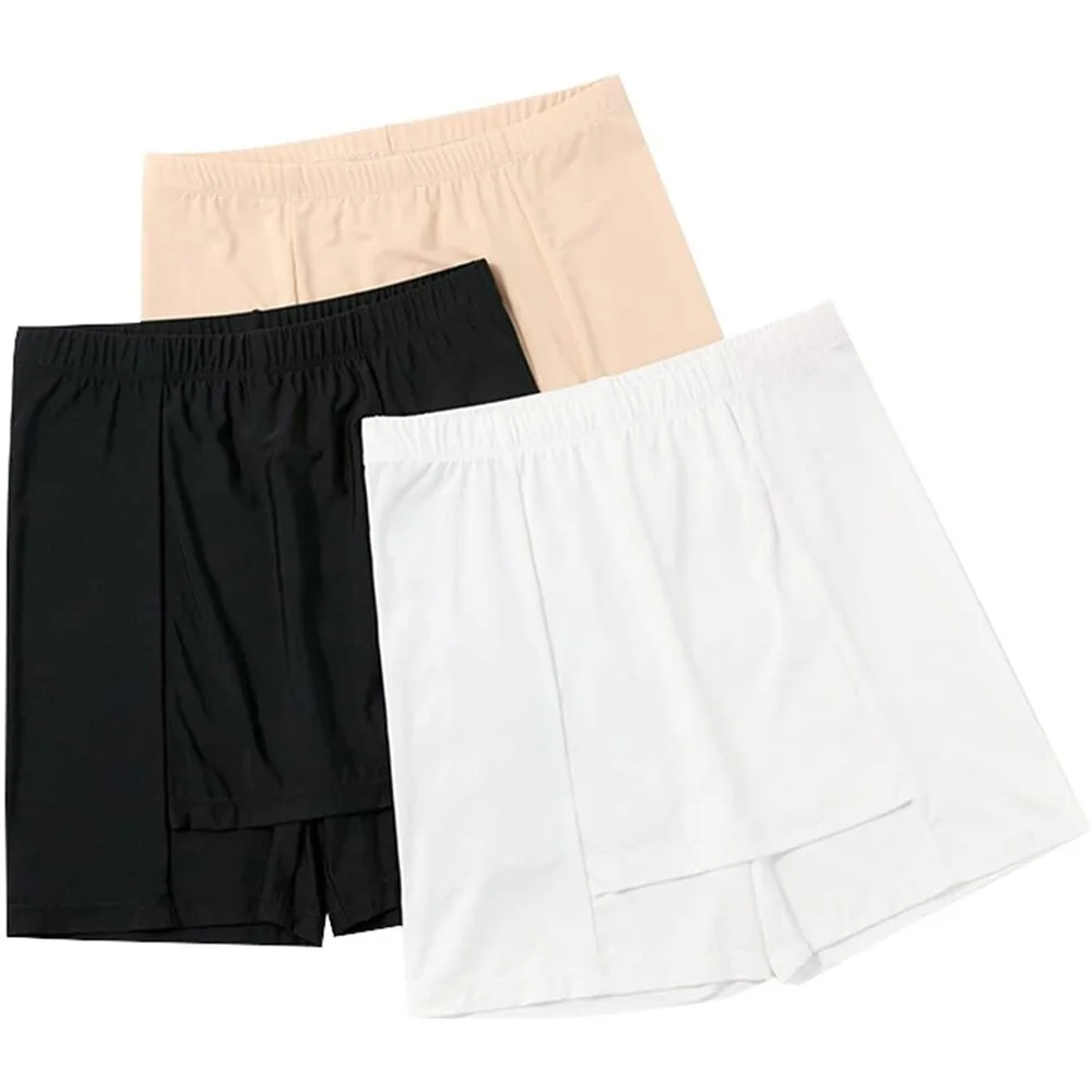 [Double-layer front crotch]:Double-layer front crotch design blocks out embarrassing lines so that you always keep elegant. they are short and will not affect the look of your favorite skirts/dresses, and they do not roll up like others shorts.