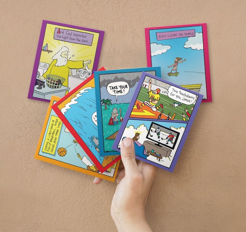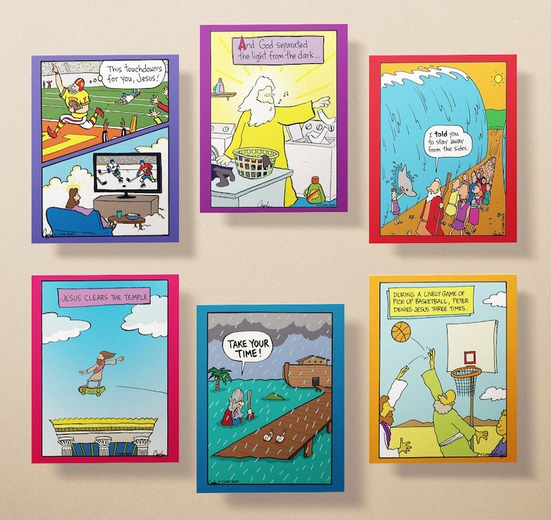 🌸This set of funny and exciting Christian themed cards includes 6 unique designs and 12 cards. Perfect for laughing or sending holiday cards to your friends in church.🎁