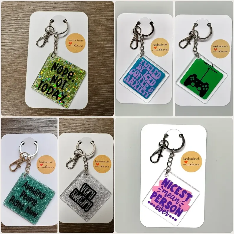 🎈This keychain is made of high-quality resin, with a smooth and lightweight feel, making it easy to carry. The square design is both classic and stylish, seamlessly blending into your life.
