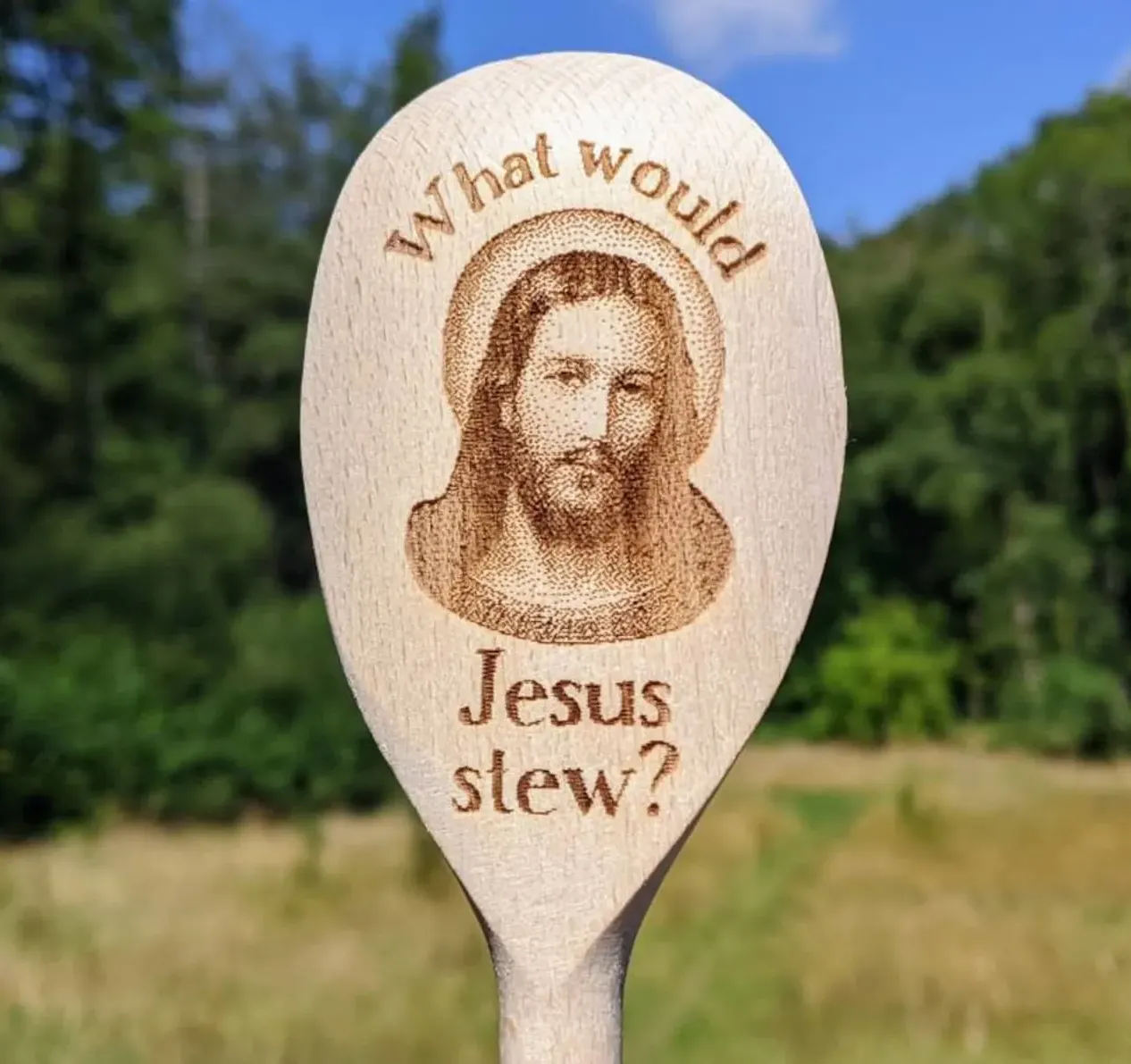 A play on the words What would Jesus Do? It's a sweet joke. If we only knew then we'd all have a better idea of what to make for dinner.