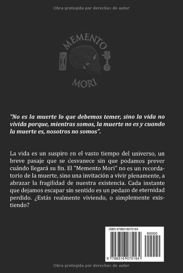 Si alguna vez te sientes perdido, solo, o atrapado en un torbellino de emociones, abre este libro y encuentra consuelo en sus palabras. Recuerda tu muerte para vivir con propósito. Cada día es una oportunidad para encontrar la fuerza de seguir adelante, para no rendirse. Memento Mori no solo te ayudará a sanar, sino que te impulsará a levantarte cada vez más fuerte.