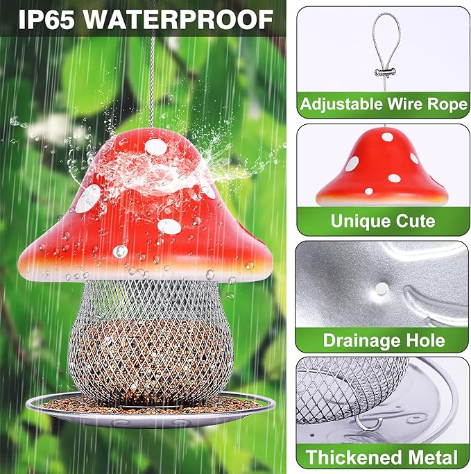 - 🍄[Wild Bird Feeder for Outdoor Hanging] you can hang it directly next to the patio or birdhouse, open the top cover to place bird food or seeds, Suitable for cardinals, finches, bluebirds and wild birds,Provide better habitat for bird