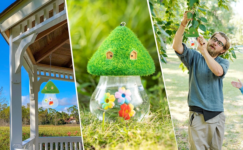 【Cute Mushroom Shape✨】Hummingbird Water Feeders for Outdoors Hanging is designed in a mushroom shape, looks very cute.