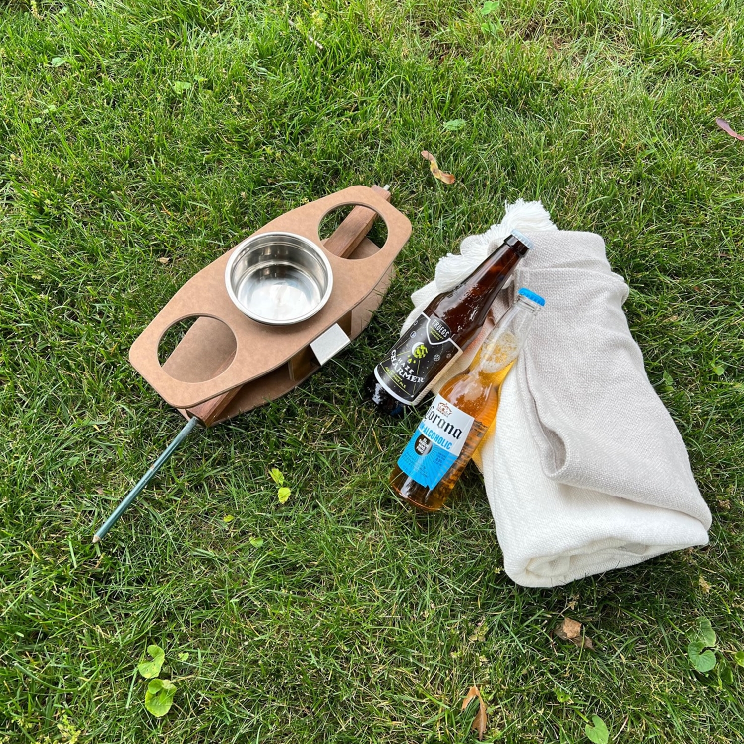 This clever collapsible table holds two cans, bottles, or glasses and a stainless steel bowl for your favorite beer pairings! It even has a built-in-bottle opener so you are never without one when you need it.