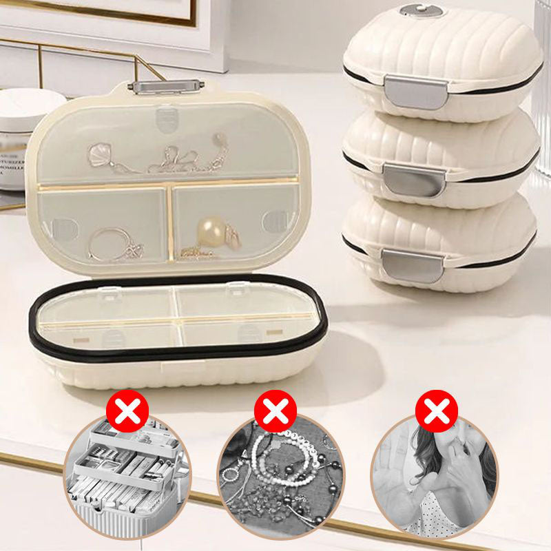 A very useful 7-compartment box for storing pills and jewelry. Tightly sealed, waterproof, dust-proof, and moisture-proof, keeping the items dry and protected.