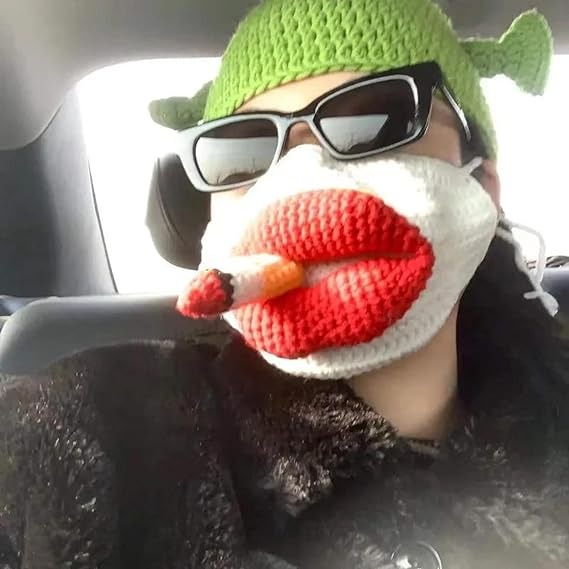 PACKAGE INCLUDES: 1×Sausage Mouth Hand Knitted Mask