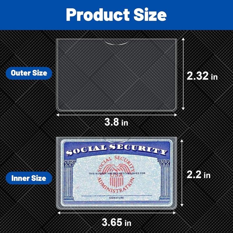Strong and Durable: Our social security card protector are made of quality PVC that is waterproof and corrosion resistant, smoother and more pliable, not easy to crack, and long-lasting protection for your cards from harm. But note that they do not offer RFID shielding.