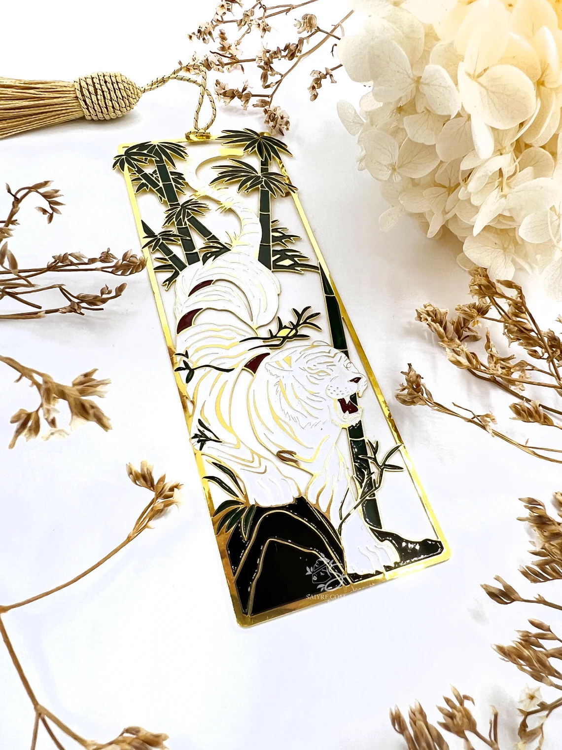 • Laser etched copper metal with gold plating and soft enamel bookmarks