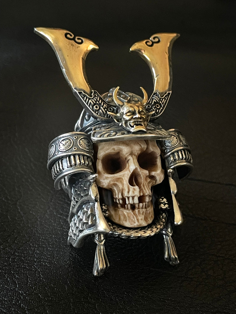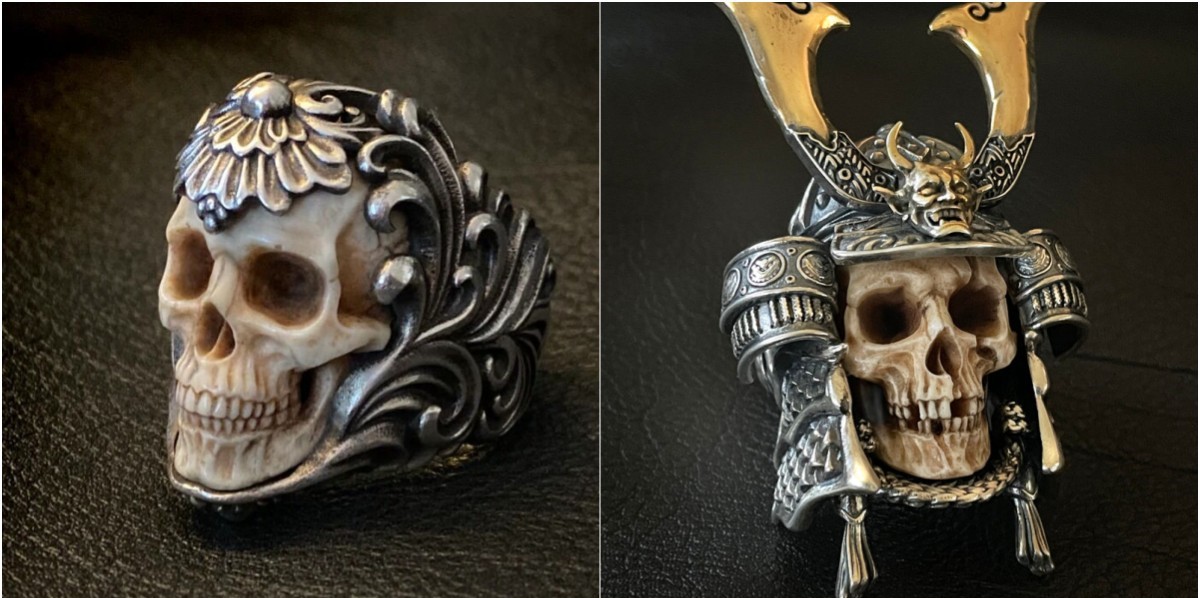 💀The super realistic skull carved from top quality deer antler of high density embedded in an intricate floral ornament silver ring band makes this piece an absolute eye-catcher.