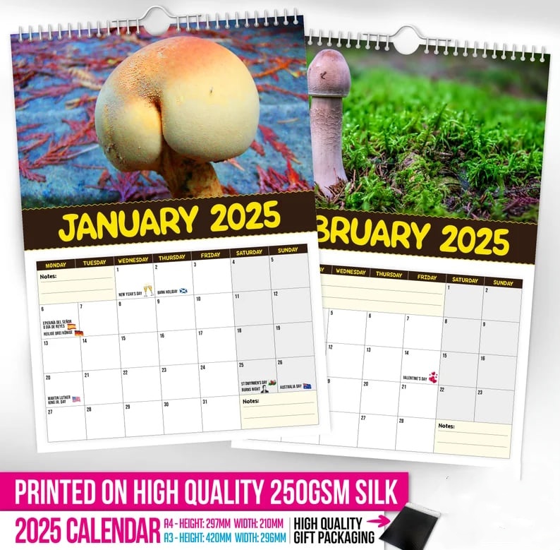 😆 This beautiful 2025 World's Greatest Mushrooms novelty wall calendar will be sure to cheer up a loved one, family member, friend, work colleague or win that special someone over.